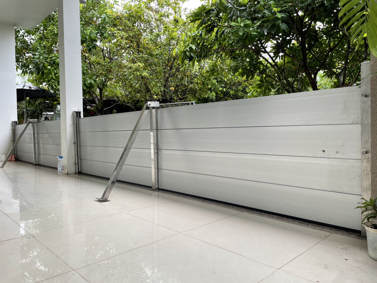 B1. Quan sát thực tế vị trí lắp đặt Cửa Ngăn Nước hay còn gọi là chặn nước, bắt buộc nền phải bằng phẳng, trường hợp nền không đạt tiêu chuẩn để thi công phải xử lý nền trước để đảm bảo nước không bị rò rỉ vào.