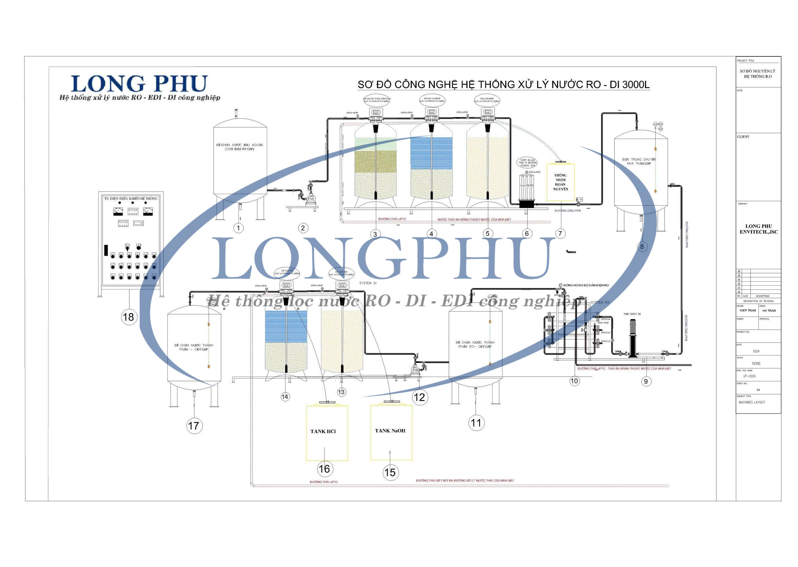 Bản vẽ Nguyên Lý Hoạt Động Hệ Lọc Nước RO DI công suất từ 250l/h đến 20m3/h